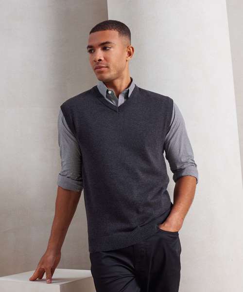 The perfect pull-over to complete your look, this sleeveless knitted sweater has contemporary styling with a deep ribbed knitted hem to help retain shape. Wear this with a collar and tie for a professional and smart approach to your working day.