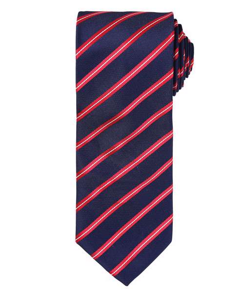 A classic Sports Stripe Tie worn as a traditional piece of teamwear for those looking for a cohesive look. Narrow stripes are woven in across the full length of the tie, making for a pleasing style.