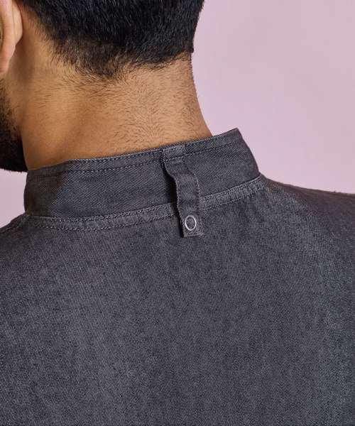 An easy-wearing pull-on chefs jacket with a concealed zip-through fastening. The two denim styles have reverse coloured panels under the arm and down the sides with the White version benefits from an under-arm breathable mesh panel. Styled with a mandarin collar and side vents for a typical style seen in many kitchen environments.