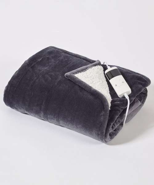 Soft, grey and plush, this luxurious blanket is incredibly tactile and won’t overheat overnight. Heat wire: 16m. Cord length: 2.4m. Time set: 5. Heat set: 10. LED display. Rapid heating: 1/2/4/6/8 hour. Auto shut-off. Fitted with UK plug – 220-240v AC 50 Hz.