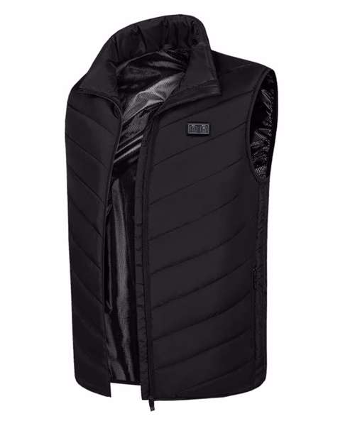 Eskimo unisex heated padded gilet with five fast heating zones and three heat settings. Independent front and back heating zones. Soft and comfy with internal pocket to store power bank. Connects to most power banks via USB-A (power bank not included).