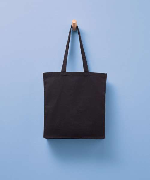 Larger-capacity bag with three side gussets. Made with recycled cotton, it can be carried over the shoulder or by hand. 280gsm weight. Handles measure 35cm x 3cm.
