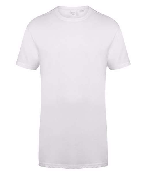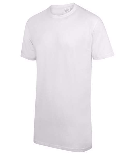 The extra long-length and regular fit at chest and shoulders provides great creative opportunities for a cool logo, motif or fashion slogan. With urban-feel drop tail hem and stretch ribbed crew neck finish. Tear-out label for easy rebranding.