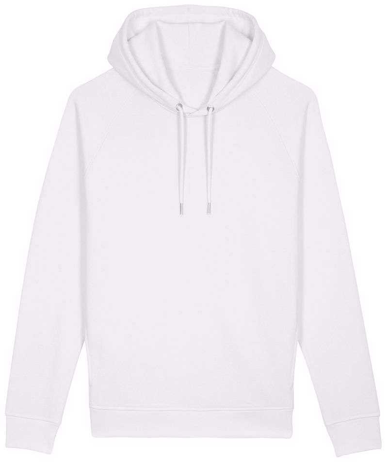 The raglan unisex hoodie sweatshirt in premium brushed 300gsm fleece, 85% organic cotton, and 15% recycled polyester. Featuring a double self-fabric hood lining which offers sturdy and durable wear, plus matt silver metal eyelets, and drawcord tipping. There is flatlock top-stitching, side pocket offering a bigger space for decoration and a half-moon at back neck.