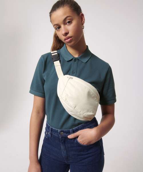 Hip bag, made with canvas fabric, fully lined. The bag can be worn around the waist or over the shoulder.