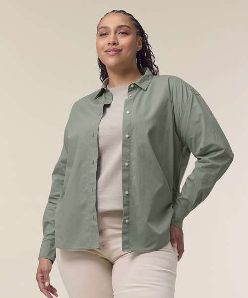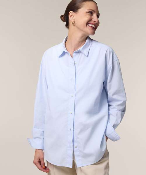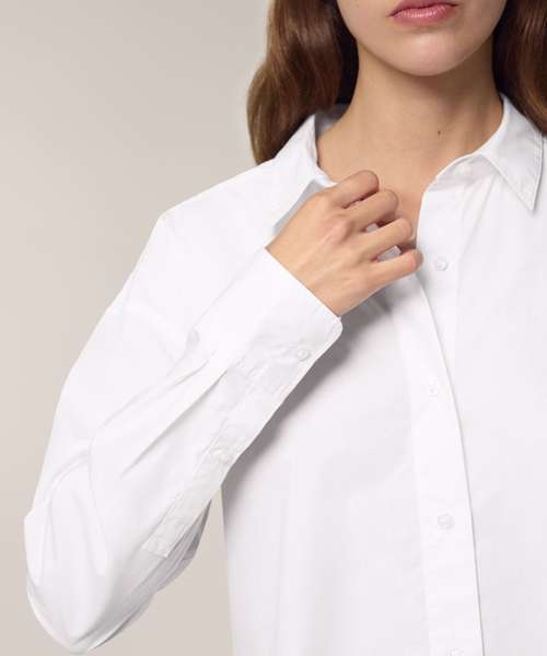 The Stella Styler shirt, for women, provides a relaxed fit in tight-weave poplin, offering a trendy retail-inspired fit. Made from premium 100% organic cotton, this crisp modern shirt is perfect for anyone looking for eco-friendly fashion that doesn’t compromise on style. At 130gsm, the Stella Styler is lightweight and breathable, yet the tightness of the weave makes it strong enough for any kind of decoration, from printing to embroidery. Dropped shoulders and a box pleat at the back offer a flattering, feminine fit, while details like a two-button cuff add a premium look and feel.