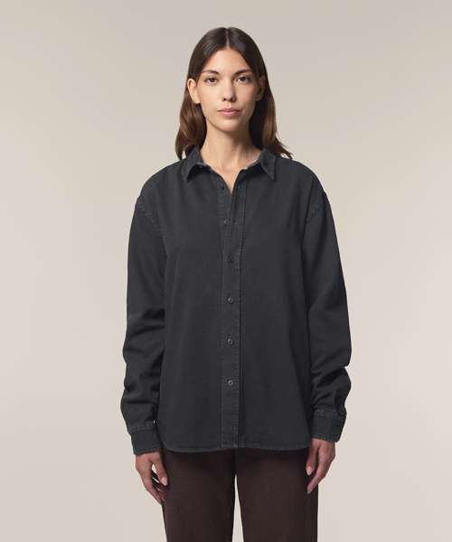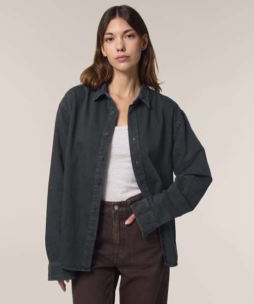 The Worker shirt, in cotton twill, is inspired by the workwear trend present in the retail market. Blending fashion and function, this unisex, relaxed-fit shirt can be worn solo or layered, and can also be styled for a classic or more streetwear-inspired look. Crafted from 100% organic cotton, the Worker shirt embodies eco-friendly unisex fashion, making it an excellent choice for those seeking sustainable, workwear-inspired blank clothing. Its sturdy 285gsm cotton twill fabric has a soft hand feel, yet is incredibly hard-wearing and durable, offering a great surface for any kind of customisation. With no back pleat, decoration possibilities on this organic cotton workwear shirt are endless.
