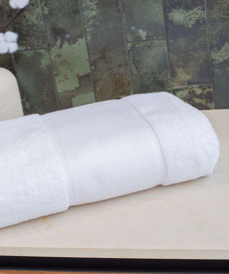 Luxury, heavyweight, organic cotton bath sheet with 14cm border area for easy decoration. Dobby design, beautifully soft hand feel and highly absorbent, with hanging loop.
