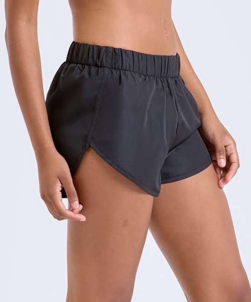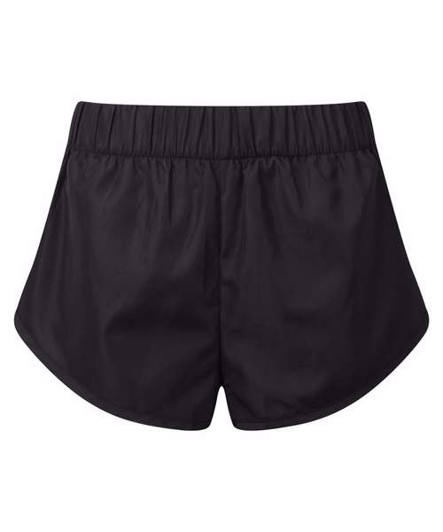 Wicking fabric. Elasticated waist. Inner liner brief for support. High thigh length. Lightweight. Zip pocket to back for storing essentials. Binding detailing to hem and sides of shorts. We recommend using block out vinyl and inks.Product contains no branded neck or waist label. Removable Kimble or looped garment tags. Inner seam label holds important product information on one label with a second label containing brand information which can be cut-away.