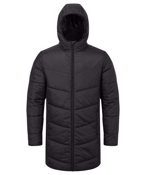 Lightweight mid-length padded jacket with diagonal quilting to centre front and back for a flattering fit. Vertical quilting side panels to body and horizontal quilting to arms. Full zip-through style with hood. Panel detailing to hood with elasticated finish for a snug fit. Internal storm flap. Zipped side pockets. Two concealed inner pockets, one left chest for storing items like a mobile phone or keys. Elasticated cuffs. Packable bag included for handy storage of jacket when not in use. We recommend using block out vinyl and inks.Product contains no branded neck or waist label. Removable Kimble or looped garment tags. Inner seam label holds important product information on one label with a second label containing brand information which can be cut-away.