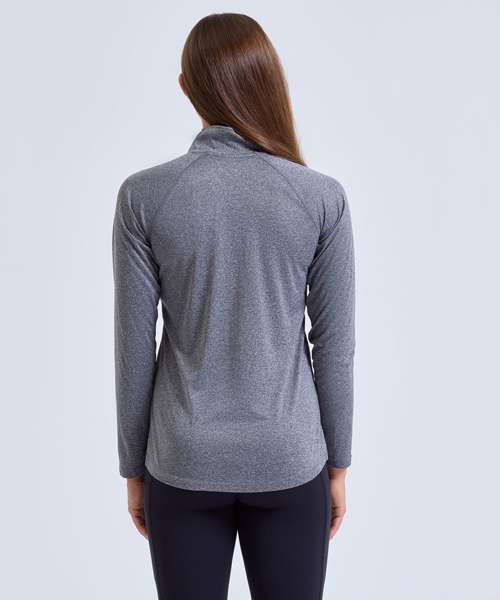 The women's TriDri® performance 1/4 zip is designed with soft, lightweight fabric that is perfect during outdoor workouts for bulk-free warmth.