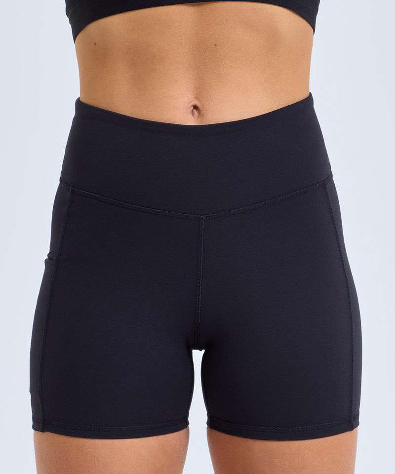 Micro shorts. Soft-stretch fabric. Self-fabric waistband. Shorts finish top of thigh. Pocket to one leg. The product contains no branded neck or waist label. Removable kimble or looped garment tags. The inner seam label holds important product information on one label with a second label containing brand information which can be cut-away. We recommend using block out vinyl and inks.