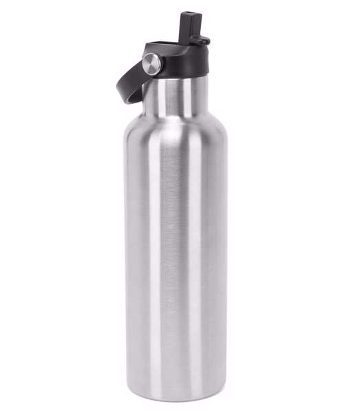 100% stainless steel water bottle. Screw lid. Flip-up straw. Inner removable plastic straw for easy cleaning. Loop for easy carrying. Keeps liquids hot or cold. Wash before use. One size. Height: 26cm. Capacity: 750ml.