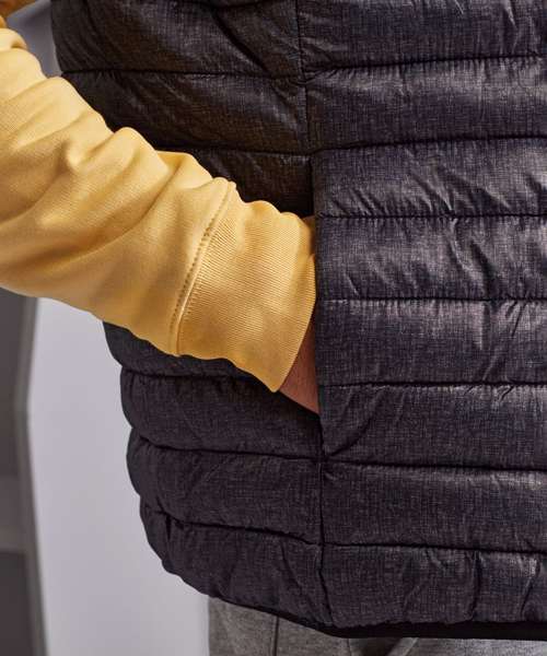 The Melange padded gilet is a versatile layer crafted with a melange effect outer and a lightweight filling for reliable insulation without weight. Cut to a tailored fit, it features zip front pockets and an concealed front zip, with elasticated binding around the hem.