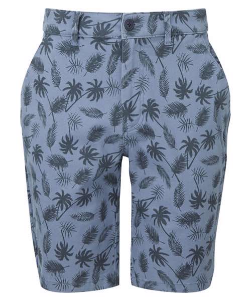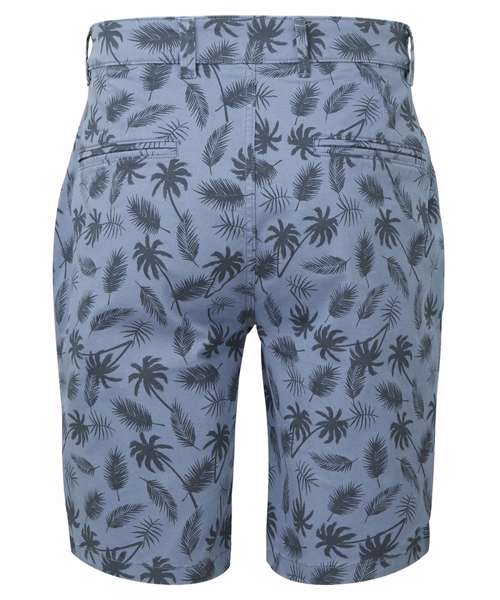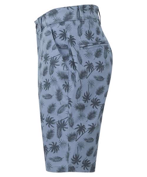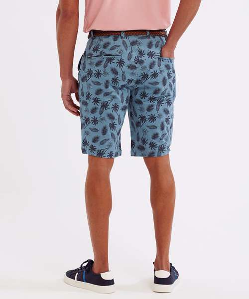 Two swing pockets and two back jet pockets. Zip fly and button fastening to the front. Soft finish fabric. Belt loops. Palm print detailing. Shorts can be worn rolled up.