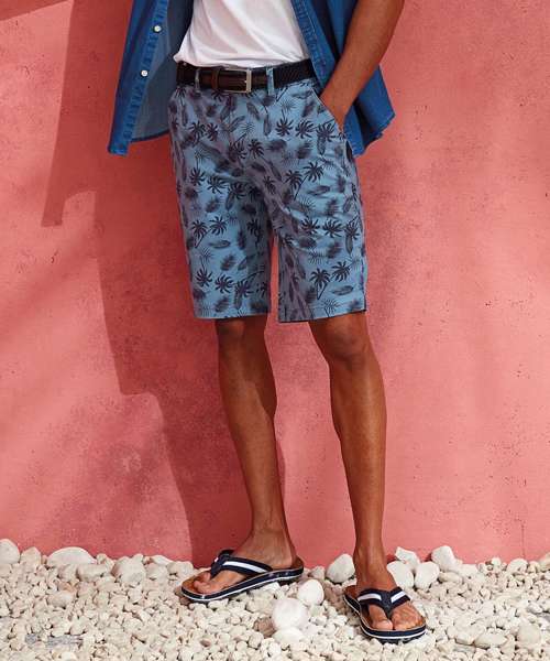 Introducing the men’s palm print shorts – a timeless style for summer. Crafted from soft and lightweight cotton to keep you cool, they have a comfortable fit and feature a palm print design, zip fly, rollable hems and contrasting button. Style these shorts with a bright t-shirt for coastal days or a shirt for smarter weekends.