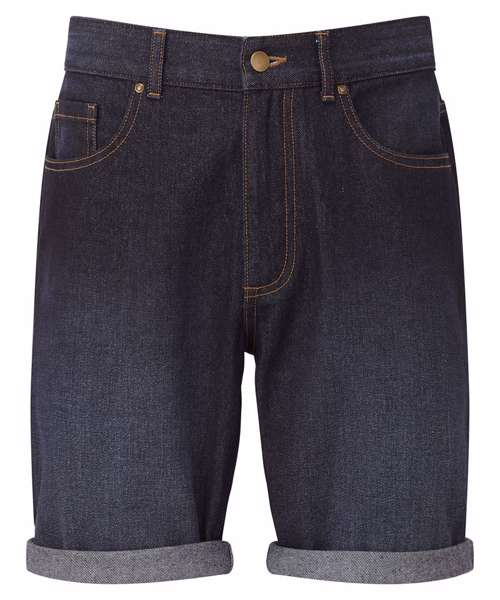 Two front pockets with coin pocket. Brass button and cap detailing. Two back patch pockets. Zip fly and button fastening. Washed denim effect. Contrast stitching. Belt loops. Shorts can be worn rolled up.